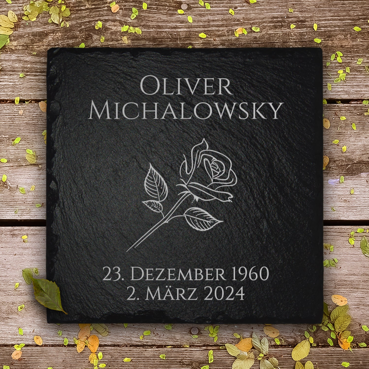 Mit unserem wetterfesten Grabschmuck aus Schiefer, der auch mit Name personalisierbar ist, verwandeln Sie das Grab Ihrer Liebsten zu jeder Jahreszeit & Wetterlage in einen liebevollen Ort der Erinnerung. So ist unser Trauerschmuck nicht nur eine schöne Dekoration für die Grabgestaltung, sondern zeugt auch von individuellem Gedenken.