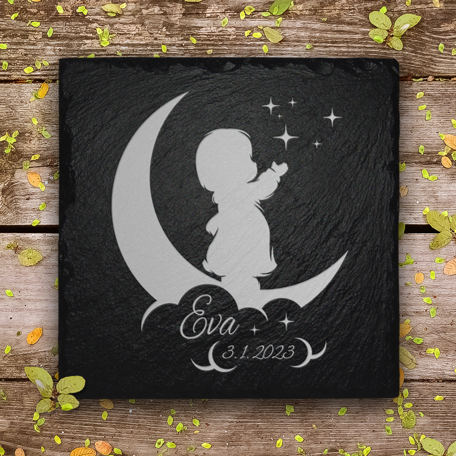 wetterfestem Schiefer, ist die Grab- und Gedenktafel zu jeder Jahreszeit bestens geschützt und kann sorglos am Grab oder der Gedenkstätte Ihres Sternenkinds platziert werden.